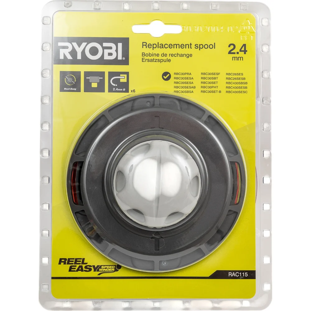 Шпуля Reel Easy RAC115 Ryobi 5132002578 предназначена для бензотриммеров Ryobi и применяется для скашивания травы. Головка является полуавтоматической, что упрощает подачу корда. Для этого достаточно лишь слегка ударить расположенной по центру головки кнопкой о землю. Специальная конструкция обеспечивает быструю намотку лески без разбора шпули. Длина лески - 6 м.