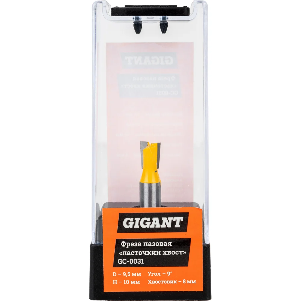 Фреза пазовая "ласточкин хвост" D9.5 H10мм ∠9 хвостовик 8мм Gigant GC-0031 предназначена для выполнения шиповых соединений корпусной мебели, ящичных соединений, врезания поперечных планок. Широко применяется при реставрационных работах по антикварной мебели. Используется совместно с фрезерными машинами и фрезерными станками. Фреза изготавливается из высококачественных материалов и характеризуется точно рассчитанной геометрией режущей кромки, обработанной алмазными дисками до точности биения 0.02 мм. Структура твердого сплава гарантирует его высокую стойкость к выщерблению по режущей кромке и, следовательно, качество обработки изделия.