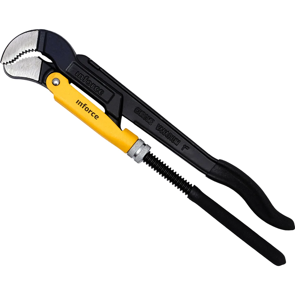 Трубный рычажный ключ Inforce №1 тип S 06-05-114 позволяет выполнять работу в ограниченном пространстве. Настройка под размер крепежа производится с помощью регулируемой гайки. Инструмент отличается самоблокируемым захватом деталей, который осуществляется благодаря форме зубьев на зажимных губках.