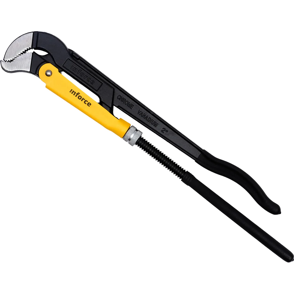 Трубный рычажный ключ Inforce №3 тип S 06-05-116 предназначен для сантехнических работ - вращения труб, соединения частей трубопроводов. За счет специальной формы инструментом можно пользоваться в труднодоступных местах, для захвата сложных по форме деталей. Форма зуба с наклоном против направления вращения обеспечивает самоблокируемый захват детали и препятствует проворачиванию ключа. Ключ изготовлен из высококачественной хромванадиевой стали, имеет порошковое покрытие для защиты от коррозии. Губки закалены токами высокой частоты для большей твердости.