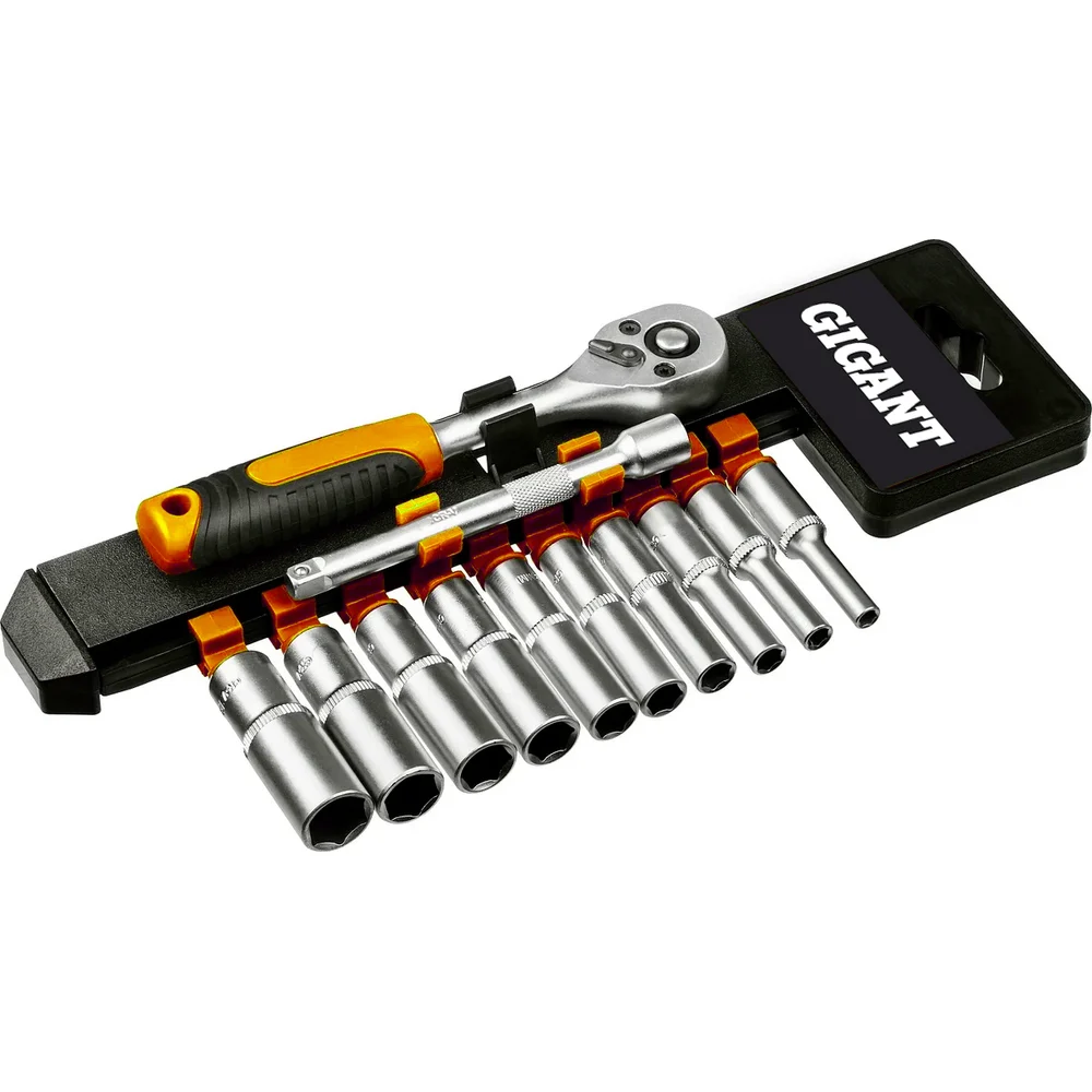 Набор шестигранных удлиненных головок Gigant с трещоткой 1/4" и удлинителем, 12 предметов GSRW-12/14 представляет собой практичное решение для работы с крепежными элементами различного размера. Включая 12 предметов, он охватывает диапазон размеров головок от 4 мм до 13 мм, что позволяет использовать его для широкого спектра задач. Трещотка с посадочным размером 1/4 дюйма и 72 зубьями обеспечивает плавную и точную работу, а удлинитель длиной 100 мм позволяет добраться до труднодоступных мест. Набор выполнен в метрической системе измерения, что делает его универсальным инструментом для профессионалов и любителей. Компактный держатель облегчает хранение и транспортировку.
