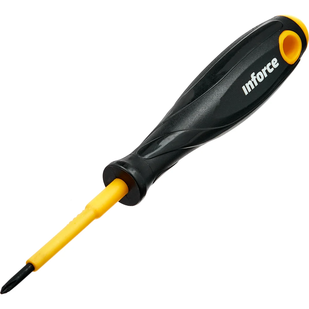Диэлектрическая отвертка PH0х60мм Inforce 06-09-73 оснащена прочным и качественным стержнем, который устойчив к изгибанию и кручению. Рельефная рукоять прочно соединена со стержнем, что позволяет работать с большим усилием. Диэлектрическое покрытие делает безопасной работу в бытовых электросетях.