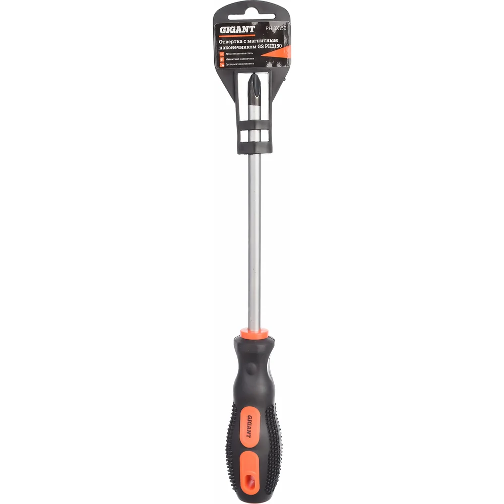 Отвертка Gigant PH3x150 с магнитным наконечником GS PH3150 - это ручной инструмент для работы с крестовым шлицем резьбовых соединений. Длина стержня составляет 150 мм, диаметр - 8 мм. Стержень отвертки выполнен из хромованадиевой стали, которая отличается прочностью, износоустойчивостью, долговечностью и стойкостью к коррозии. Эргономичная рукоятка выполнена из двухкомпонентного материала, это обеспечивает надежный захват и снижает нагрузку на руку. Отвертка с магнитным наконечником облегчает работу с небольшим крепежом, так как надежно фиксируется и не проскальзывает в пазу. Gigant – собственная торговая марка компании ВсеИнструменты.ру, разработанная специально для требовательных мастеров. Продукция представлена профессиональными и бытовыми инструментами, имеет доступную цену и высокое качество. При изготовлении товаров Gigant используется современное оборудование и прочные материалы. Производство осуществляется на современных предприятиях России и Азии. Тестирование товаров осуществляется в два этапа, каждая партия инструментов проходит проверку на соответствие стандартам и заявленным техническим характеристикам. Это является залогом качества и надежности готового продукта. Продукция представлена широкой линейкой инструментов. У нас можно приобрести ручной инструмент, строительный, садовый, сантехнический, климатический, крепежный, автогаражный, а также станки, расходные материалы и многое другое.