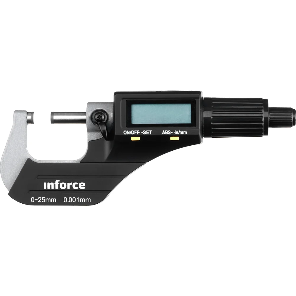 Цифровой микрометр 0-25мм/0-1"*0.001мм/0.00005" Inforce 06-11-44 - простой и удобный измерительный прибор, который с высокой точностью определяет линейный размер детали. Модель выполнена из прочных материалов, оснащена батарейкой для питания электронного блока. Устройство позволяет значительно повысить качество выполняемых работ. Максимальное усилие при затяжке должно быть до трёх щелчков.