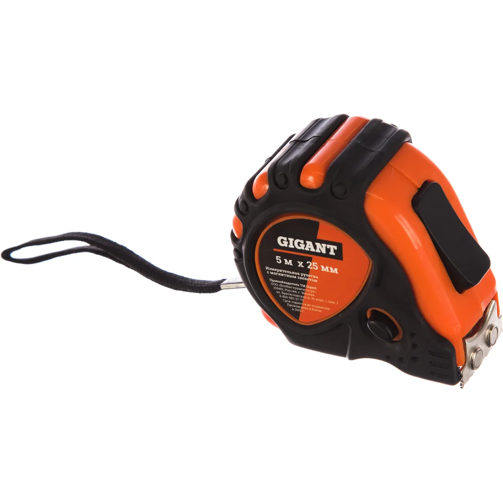 Измерительная рулетка Gigant 5x25мм с магнитным захватом GMT 525 - это удобный измерительный инструмент, который используется в профессиональных мастерских и в домашних условиях для определения размеров объектов и предметов. Обрезиненный пластиковый корпус вмещает в себя стальную ленту длиной 5 метров. На конце ленты есть магнитный захват. Двойная блокировка облегчает проведение измерений, за счет надежной фиксации ленты. Gigant – собственная торговая марка компании ВсеИнструменты.ру, разработанная специально для требовательных мастеров. Продукция представлена профессиональными и бытовыми инструментами, имеет доступную цену и высокое качество. При изготовлении товаров Gigant используется современное оборудование и прочные материалы. Производство осуществляется на современных предприятиях России и Азии. Тестирование товаров осуществляется в два этапа, каждая партия инструментов проходит проверку на соответствие стандартам и заявленным техническим характеристикам. Это является залогом качества и надежности готового продукта. Продукция представлена широкой линейкой инструментов. У нас можно приобрести ручной инструмент, строительный, садовый, сантехнический, климатический, крепежный, автогаражный, а также станки, расходные материалы и многое другое.