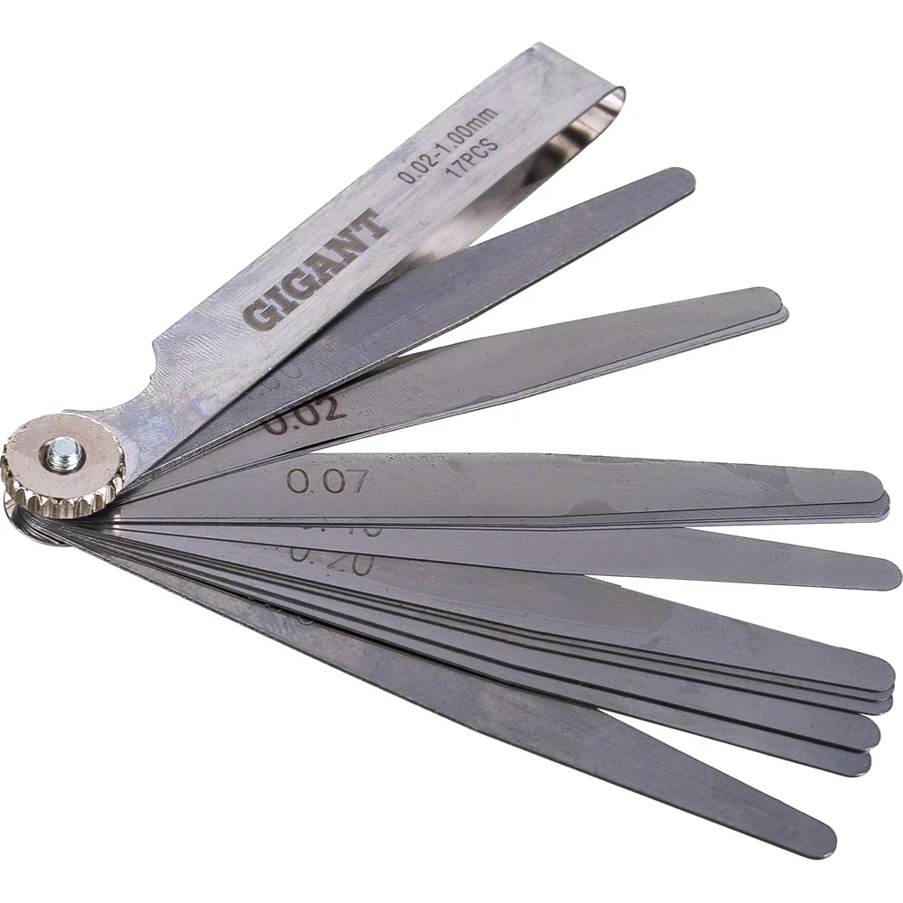 Набор измерительных щупов Gigant 17 шт., 0,02-1,00 мм GGS-17 - это набор измерительных пластин разной толщины в металлическом корпусе. Плоские измерительные щупы применяются для контроля зазоров между плоскостями. Щуп имеет вид пластинки определенной толщины. Они могут применяться отдельно или в различных сочетаниях. Щупы изготовлены из прочной стали, имеют долгий срок службы. Минимальная толщина измерения составляет 0,02 мм, максимальная - 1 мм. Набор имеет компактные размеры и удобен в использовании. Gigant – собственная торговая марка компании ВсеИнструменты.ру, разработанная специально для требовательных мастеров. Продукция представлена профессиональными и бытовыми инструментами, имеет доступную цену и высокое качество. При изготовлении товаров Gigant используется современное оборудование и прочные материалы. Производство осуществляется на современных предприятиях России и Азии. Тестирование товаров осуществляется в два этапа, каждая партия инструментов проходит проверку на соответствие стандартам и заявленным техническим характеристикам. Это является залогом качества и надежности готового продукта. Продукция представлена широкой линейкой инструментов. У нас можно приобрести ручной инструмент, строительный, садовый, сантехнический, климатический, крепежный, автогаражный, а также станки, расходные материалы и многое другое.