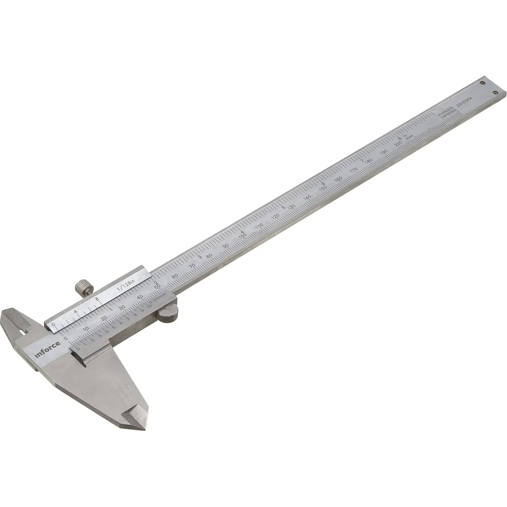 Штангенциркуль 0-200 мм Inforce 06-11-37 - это качественный и надёжный измерительный инструмент с размером шага 0.05 мм. Погрешность измерения инструмента - 0.03 мм. Линейка у этой модели выдвигается и убирается при перемещении рамки. Инструмент полностью соответствует всем мировым и внутренним калибровочным и поверочным стандартам.