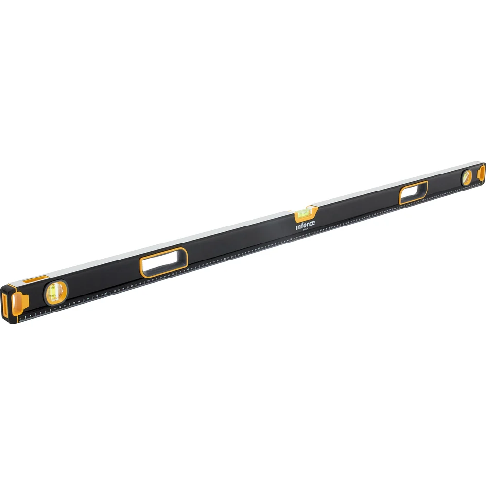 Магнитный уровень Inforce 1500мм 06-11-060 - удобный измерительный инструмент из прочного материала. Оснащен четырьмя высокоточными глазками, которые имеют защиту от УФ-лучей. Уровень используется при строительстве и ремонте для определения отклонения от горизонтали и вертикали. На корпус нанесена измерительная разметка, поэтому инструмент подходит для использования в качестве линейки.
