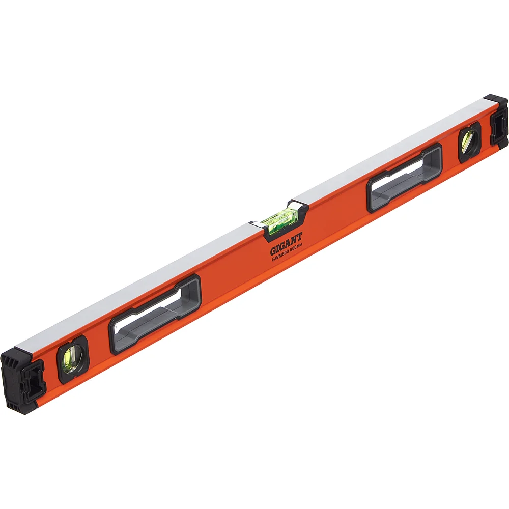 Алюминиевый магнитный строительный уровень Gigant 800мм GWM800 используется строителями во время укладки полов или штукатурке стен. Инструмент позволяет выявить отклонение поверхности благодаря встроенным глазкам с точностью до 0,5 мм. Корпус уровня оснащен встроенным магнитом и перфорированной поверхностью для надежной фиксации на плоскости. Имеется две отфрезерованные стороны - верхняя и нижняя. Данный товар поставляется взамен модели: Алюминиевый магнитный строительный уровень Inforce PROFline 800мм 06-11-13. Уровень изготовлен из высококачественного алюминиевого профиля. Инструмент имеет противоударную конструкцию. Уровень имеет специальное отверстие для хранения в подвешенном состоянии. Gigant – собственная торговая марка компании ВсеИнструменты.ру, разработанная специально для требовательных мастеров. Продукция представлена профессиональными и бытовыми инструментами, имеет доступную цену и высокое качество. При изготовлении товаров Gigant используется современное оборудование и прочные материалы. Производство осуществляется на современных предприятиях России и Азии. Тестирование товаров осуществляется в два этапа, каждая партия инструментов проходит проверку на соответствие стандартам и заявленным техническим характеристикам. Это является залогом качества и надежности готового продукта. Продукция представлена широкой линейкой инструментов. У нас можно приобрести ручной инструмент, строительный, садовый, сантехнический, климатический, крепежный, автогаражный, а также станки, расходные материалы и многое другое.