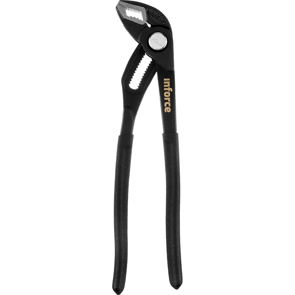 Переставные клещи с механизмом быстрой фиксации 250 мм Inforce 06-18-48 с максимальным захватом 50 мм. Инструмент выполнен из прочной и износостойкой стали. Клещи оснащены удобными виниловыми рукоятками. Они не скользят в руке при выполнении работ. Инструмент выполнен из конструкционной стали марки 60