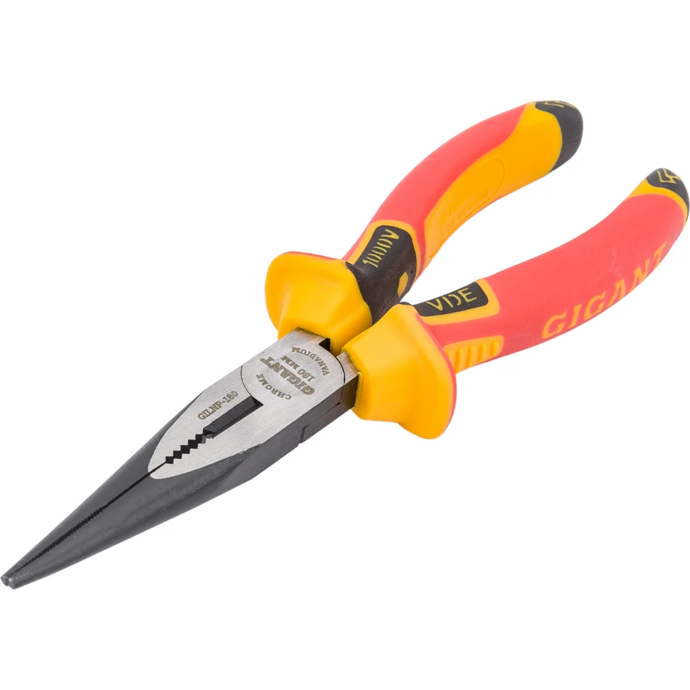 Изолированные прямые длинногубцы Gigant 180 мм GILNP-180 предназначены для электромонтажных работ. Захватные губки имеют зубцы для лучшего удержания деталей. Никелированная головка защищена от коррозии. Диэлектрическое покрытие рукояток защищает пользователя от поражения током.
