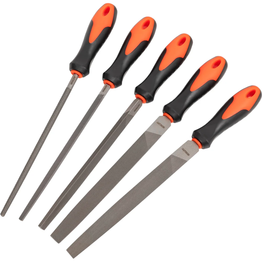 Набор напильников Gigant №2, 200 мм GFS-200-2 благодаря входящим в комплект инструментам с разным профилем пригодится для обработки плоских, вогнутых поверхностей, кромок, выступов и обрезки заусенцев. Рабочие части изготовлены из высококачественной инструментальной стали и закалены, что значительно продлевает срок службы. Двойная насечка позволяет быстрее и качественнее произвести работу. Двухкомпонентная рукоятка создает дополнительный комфорт.