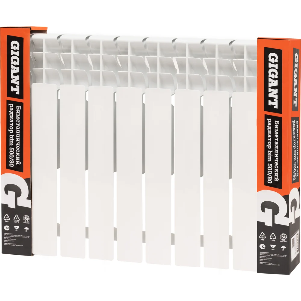 Биметаллический радиатор bim 500/80 10 секций Gigant GRBM58-10 - современный отопительный прибор, который можно установить как в небольшом загородном доме с собственным котлом, так и подключенной к тепловым сетям «многоэтажке». Особая волнообразная форма оребрения повышает теплоотдачу на 3% за счет беспрепятственного прохождения нагреваемого воздуха при движении внутри радиатора. Дополнительное оребрение на вертикальном коллекторе секции увеличивает теплоотдачу радиатора на 5%. Такое решение способствует более быстрому обогреву помещений при том же размере и весе секций. Применение полностью стального закладного элемента, выполненного из углеродистой стали марки 20, которая отличается повышенной коррозионной стойкостью и эксплуатационной надежностью. Гарантирует надежную работу в системах, подверженных гидроударам и с химически агрессивными теплоносителями (в том числе антифризами).