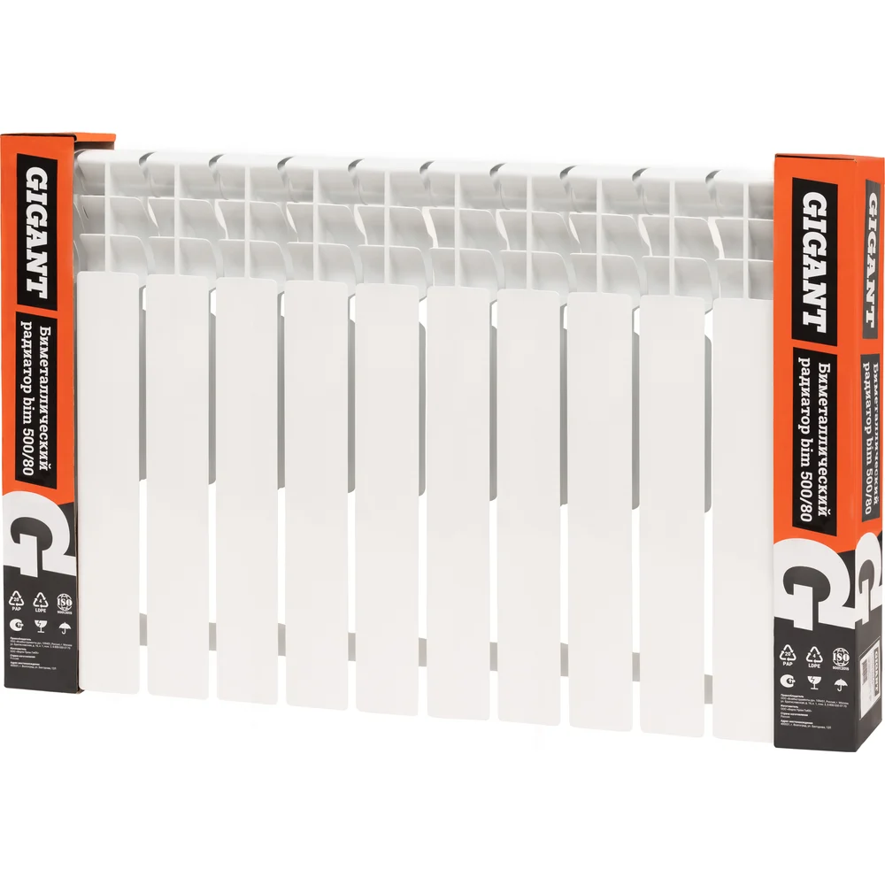 Биметаллический радиатор bim 500/80 12 секций Gigant GRBM58-12 - современный отопительный прибор, который можно установить как в небольшом загородном доме с собственным котлом, так и подключенной к тепловым сетям «многоэтажке». Особая волнообразная форма оребрения повышает теплоотдачу на 3% за счет беспрепятственного прохождения нагреваемого воздуха при движении внутри радиатора. Дополнительное оребрение на вертикальном коллекторе секции увеличивает теплоотдачу радиатора на 5%. Такое решение способствует более быстрому обогреву помещений при том же размере и весе секций. Применение полностью стального закладного элемента, выполненного из углеродистой стали марки 20, которая отличается повышенной коррозионной стойкостью и эксплуатационной надежностью. Гарантирует надежную работу в системах, подверженных гидроударам и с химически агрессивными теплоносителями (в том числе антифризами).