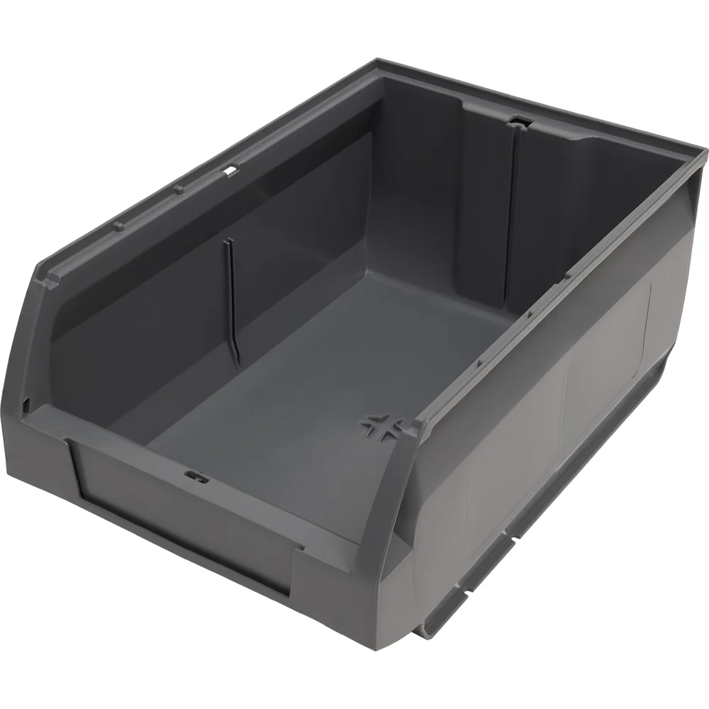 Ящик Gigant 350x230x150 ПП темно-серый 32081 - это штабелируемый складской ящик для хранения метизов, крепежа, инструментов и т.д. Имеется карман для ярлыков, что обеспечивает легкий поиск необходимого содержимого. Возможна установка съемных перегородок (опция).