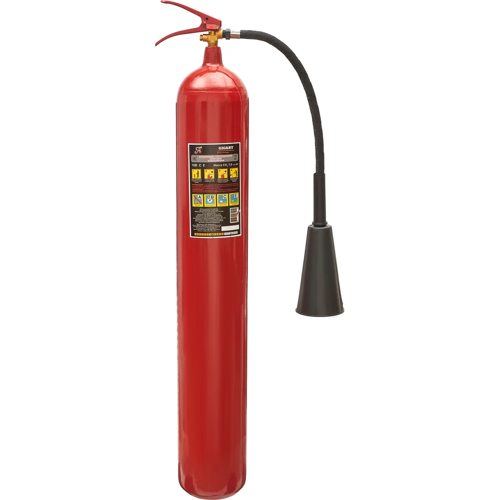 Углекислотный огнетушитель Gigant ОУ-7-ВСЕ-01 GT-ОУ-7 - это закачной огнетушитель высокого давления с зарядом жидкой двуокиси углерода, находящейся под давлением жидких паров. Применяется для первичного тушения пожаров и возгораний класса B, C, E (горючие и легковоспламеняющиеся жидкости, горючие газы, электроустановки, не превышающие напряжение 10000 Вольт). Основным преимуществом углекислотного огнетушителя является то, что двуокись углерода не повреждает объект тушения и не оставляет следов.