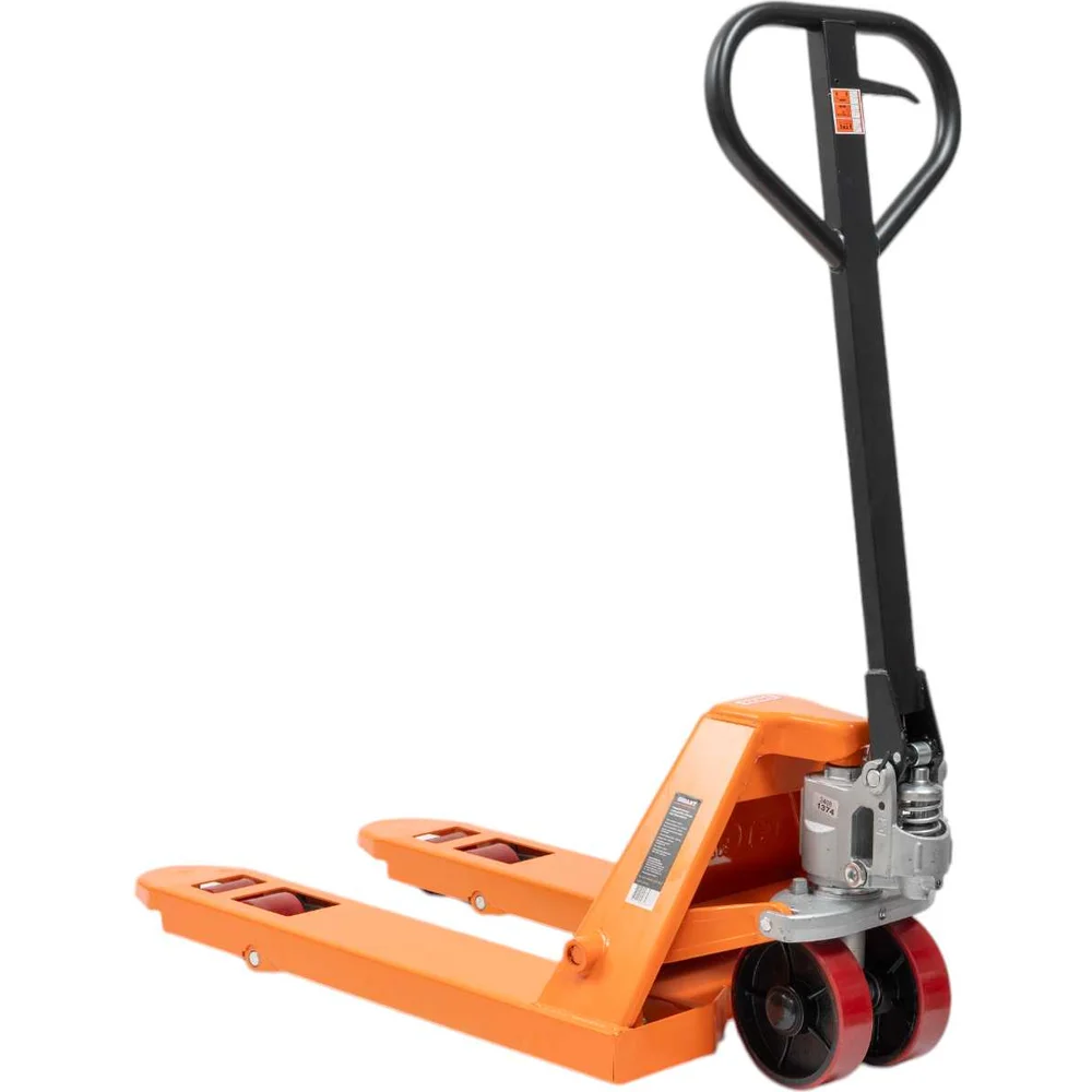 Гидравлическая тележка Gigant JHPT2500 подойдет для работы на складах со средней пропускной способностью. Наличие гидравлического узла позволяет перевозить палетированные грузы массой до 2,5 тонн. Минимальная высота подъема составляет 85 мм, максимальная - 195 мм. Длина вил - 115 см. Вилы легко поднимают стандартные и евро-поддоны. Благодаря оптимальной длине сохранена маневренность, необходимая для узких помещений. Полиуретановые колеса - для плавности. Gigant – собственная торговая марка компании ВсеИнструменты.ру, разработанная специально для требовательных мастеров. Продукция представлена профессиональными и бытовыми инструментами, имеет доступную цену и высокое качество. При изготовлении товаров Gigant используется современное оборудование и прочные материалы. Производство осуществляется на современных предприятиях России и Азии. Тестирование товаров осуществляется в два этапа, каждая партия инструментов проходит проверку на соответствие стандартам и заявленным техническим характеристикам. Это является залогом качества и надежности готового продукта. Продукция представлена широкой линейкой инструментов. У нас можно приобрести ручной инструмент, строительный, садовый, сантехнический, климатический, крепежный, автогаражный, а также станки, расходные материалы и многое другое.