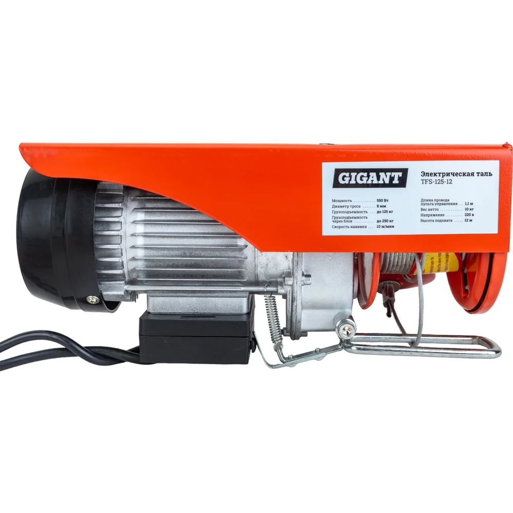 Электрическая таль Gigant TFS-125-12 применяется на строительных площадках и в производственных цехах. Предназначена для поднятия грузов массой до 125 кг без блока и 250 кг - через блок. Высота подъема составляет 12 метров, диаметр троса - 3 мм. Таль имеет имеет электромеханический тормоз. Корпус покрыт слоем краски, которая обеспечивает защиту от коррозии. Управление осуществляется при помощи пульта. Gigant – собственная торговая марка компании ВсеИнструменты.ру, разработанная специально для требовательных мастеров. Продукция представлена профессиональными и бытовыми инструментами, имеет доступную цену и высокое качество. При изготовлении товаров Gigant используется современное оборудование и прочные материалы. Производство осуществляется на современных предприятиях России и Азии. Тестирование товаров осуществляется в два этапа, каждая партия инструментов проходит проверку на соответствие стандартам и заявленным техническим характеристикам. Это является залогом качества и надежности готового продукта. Продукция представлена широкой линейкой инструментов. У нас можно приобрести ручной инструмент, строительный, садовый, сантехнический, климатический, крепежный, автогаражный, а также станки, расходные материалы и многое другое.