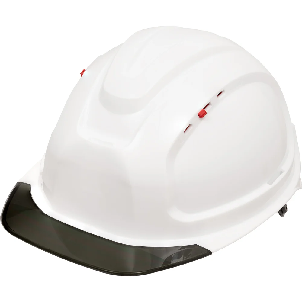 Защитная каска Gigant Alt Pro белая храповая регулировка c прозрачным серым козырьком GHAP-22 защищает голову пользователя от повреждений падающими предметами, от воздействия влаги, брызг металла, химических рисков. Область применения: погрузо-разгрузочные работы, машиностроение, монтаж и наладка оборудования, горно-добывающая промышленность, строительство и ЖКХ, металлургия, добыча и переработка нефти и газа, работы в зимний период и в IV климатическом поясе, работы в зонах с недостаточной освещенностью. Несущая лента внутренней оснастки имеет специальные крючки в затылочной части для крепления пелерины. 4-точечный подбородочный ремень крепится к корпусу каски при помощи карабинов, регулируется по длине при помощи пряжки, а для быстрого съема каски с головы пользователя установлена застежка.