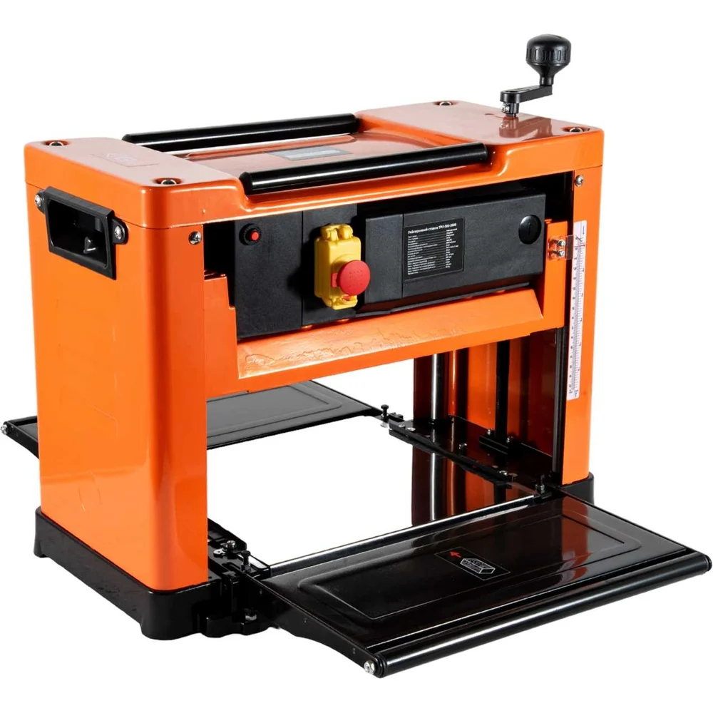 Рейсмусовый станок Gigant TPJ-305-2000 служит для строгания деревянных заготовок по заданной высоте. Оснащен откидными столами, которые обеспечивают удобство в работе. Благодаря высокой производительности станок позволит обрабатывать изделия толщиной от 6 до 160 мм и шириной до 305 мм. Простота транспортировки - благодаря удобным ручкам на боковых панелях корпуса. Чистое рабочее место - за счет системы пылеудаления. Защита от перегрузки - с помощью прерывателя электропитания. Безопасность работы обеспечивается многосекционной зубчатой защитой от обратного удара при рейсмусовании по всей рабочей ширине станка. Автоматическая подача заготовки со скоростью 8,5 метров в минуту увеличивает производительность труда, процесс обработки осуществляется значительно быстрее. Два ножа из быстрорежущей стали вращаются со скоростью 8000 об/мин, что гарантирует высокое качество обработки. Дополнительные характеристики: Максимальная глубина строгания за один проход: 3 мм. Максимально допустимая глубина строгания за один проход по всей ширине заготовки: 1 мм. Минимальная длина заготовки: 130 мм. Шаблон для установки ножей входит в комплект поставки.