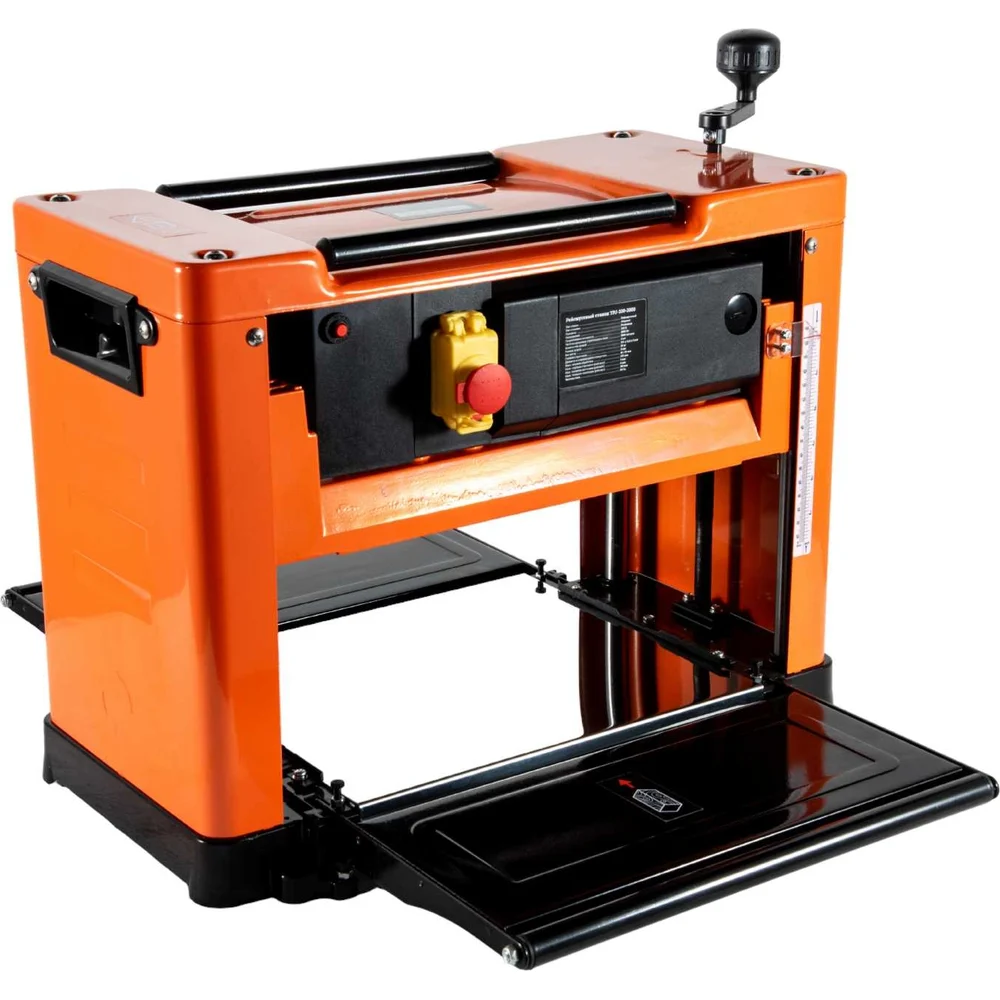 Рейсмусовый станок Gigant TPJ-330-2000 служит для строгания деревянных заготовок по заданной высоте. Оснащен откидными столами, которые обеспечивают удобство в работе. Благодаря высокой производительности станок позволит обрабатывать изделия толщиной от 6 до 160 мм и шириной до 330 мм. Простота транспортировки - благодаря удобным ручкам на боковых панелях корпуса. Чистое рабочее место - за счет системы пылеудаления. Защита от перегрузки - с помощью прерывателя электропитания. Безопасность работы обеспечивается многосекционной зубчатой защитой от обратного удара при рейсмусовании по всей рабочей ширине станка. Автоматическая подача заготовки со скоростью 8,5 метров в минуту увеличивает производительность труда, процесс обработки осуществляется значительно быстрее. Два ножа из быстрорежущей стали вращаются со скоростью 8000 об/мин, что гарантирует высокое качество обработки. Дополнительные характеристики: Максимальная глубина строгания за один проход: 3 мм. Максимально допустимая глубина строгания за один проход по всей ширине заготовки: 1 мм. Минимальная длина заготовки: 130 мм. Шаблон для установки ножей входит в комплект поставки.
