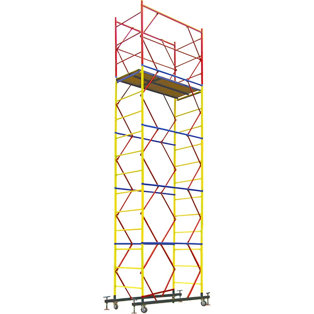 Вышка-тура Gigant 0,7x1,6м H=6,4м GTT-008 - универсальная передвижная модель для строительных, ремонтных, монтажных работ как внутри помещения, так и для уличных работ. За счет ширины базового блока на ней комфортно работать сразу нескольким людям, разместив весь необходимый инструмент и материалы. Легко собирается без необходимости использования специального инструмента (все элементы соединяются флажковыми механизмами). Ее просто перемещать по объекту за счет наличия больших прорезиненных колес, которые также снабжены фиксаторами положения. Вышка тура ВСП изготавливается из электросварной трубы диаметром 42 мм. Все детали окрашиваются по технологии порошковой окраски, в итоге получается покрытие с высокими защитными и декоративными свойствами. Настил изготовлен из фанеры толщиной 10 мм, состоит из трех независимых частей, в одной из которых есть люк для безопасного и удобного перемещения для проведения работ. Также настилы можно размещать на разных уровнях вышки для одновременных работ, соблюдая технику безопасности. Помните, вышка выдерживает общий вес до 250 кг. ВАЖНО: При высоте вышки более 5 метров рекомендуем использовать комплект стабилизаторов для обеспечения лучшей устойчивости и безопасности проводимых на вышке работ. В процессе транспортировки вышка может получить визуальные потертости, царапины и прочее, что никак не влияет на ее эксплуатационные характеристики и не признается браком.