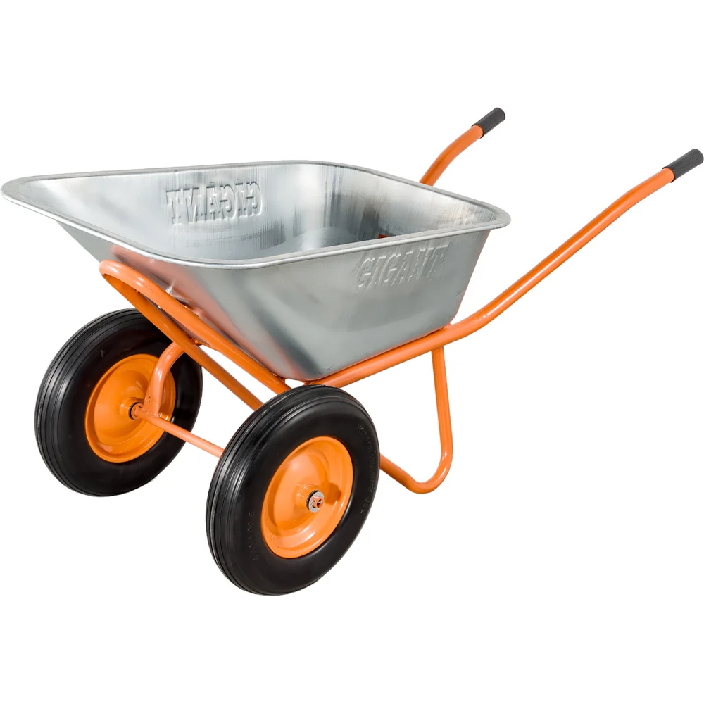 Строительная двухколесная тачка Gigant 110л, 240 кг GX-04 предназначена для перевозки сыпучих материалов, строительного мусора, удобна на строительной площадке или на дачном участке. Тачка проста в эксплуатации, легко собирается. Предусмотрены резиновые накладки на ручки тачки. Рекомендуемый режим работы: Перед применением проверять затяжку креплений. Равномерно распределять нагрузку по корыту. Эксплуатировать на ровной, уплотненной поверхности. После применения очистить от грязи, раствора, ополоснуть водой и просушить.
